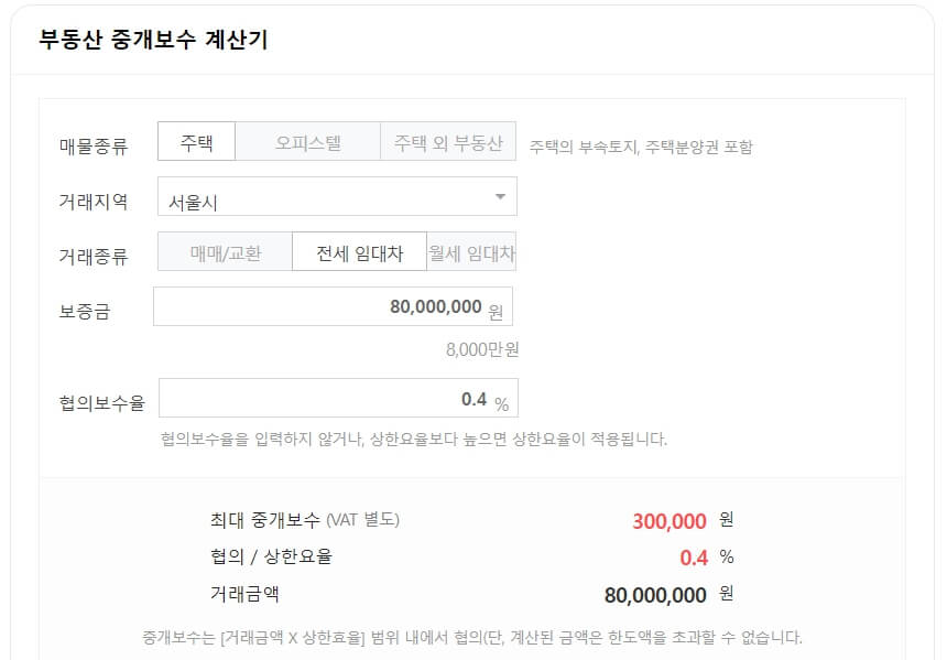 ※ 오피스텔에서는 수수료 한도액이 따로 없습니다.